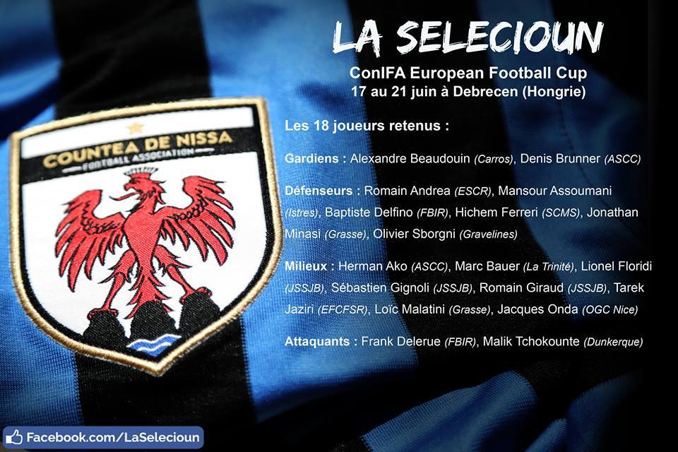 Em 2014, a confederação organizou o primeiro mundial, com 12 seleções de diferentes regiões, em Östersunds, Suécia. O campeão foi o Condado de Nice, que irá disputar a edição europeia. Ilha de Man (ou Ellan Vannin) e Padânia também disputaram a ConIFA World Cup e estarão na Euro. Completam as seleções, a a “anfitriã” Székely, Povo Romani e Félvidek.