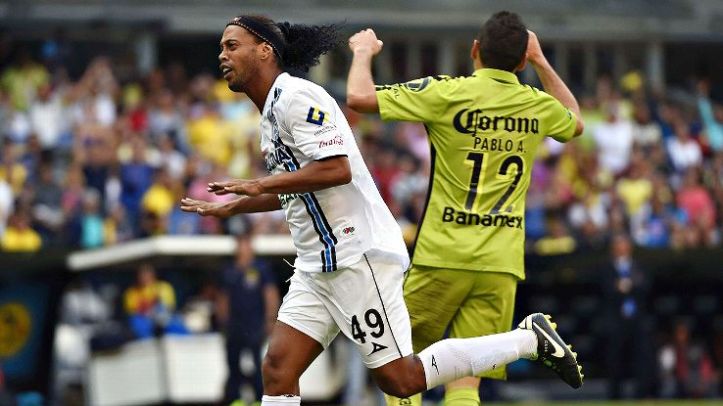 Depois dos três gols em seis partidas, Ronaldinho viveu a maior seca, com 13 jogos sem marcar. A volta às redes foi em uma das mais emblemáticas vitórias da história do clube, talvez a maior, quando no Azteca fez 4 a 0 no América, com os dois últimos gols dele, sendo que entrou aos 39 minutos do segundo tempo.