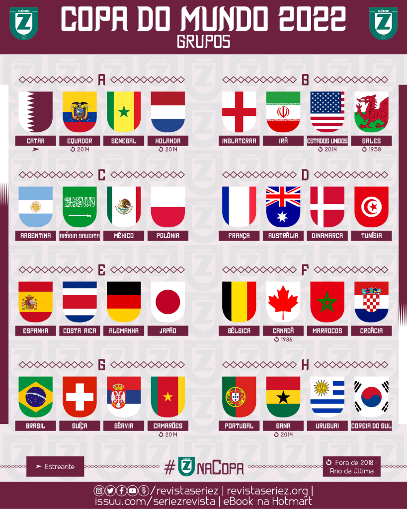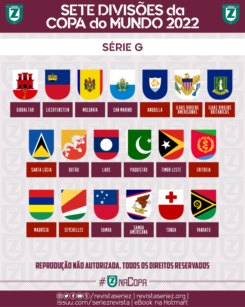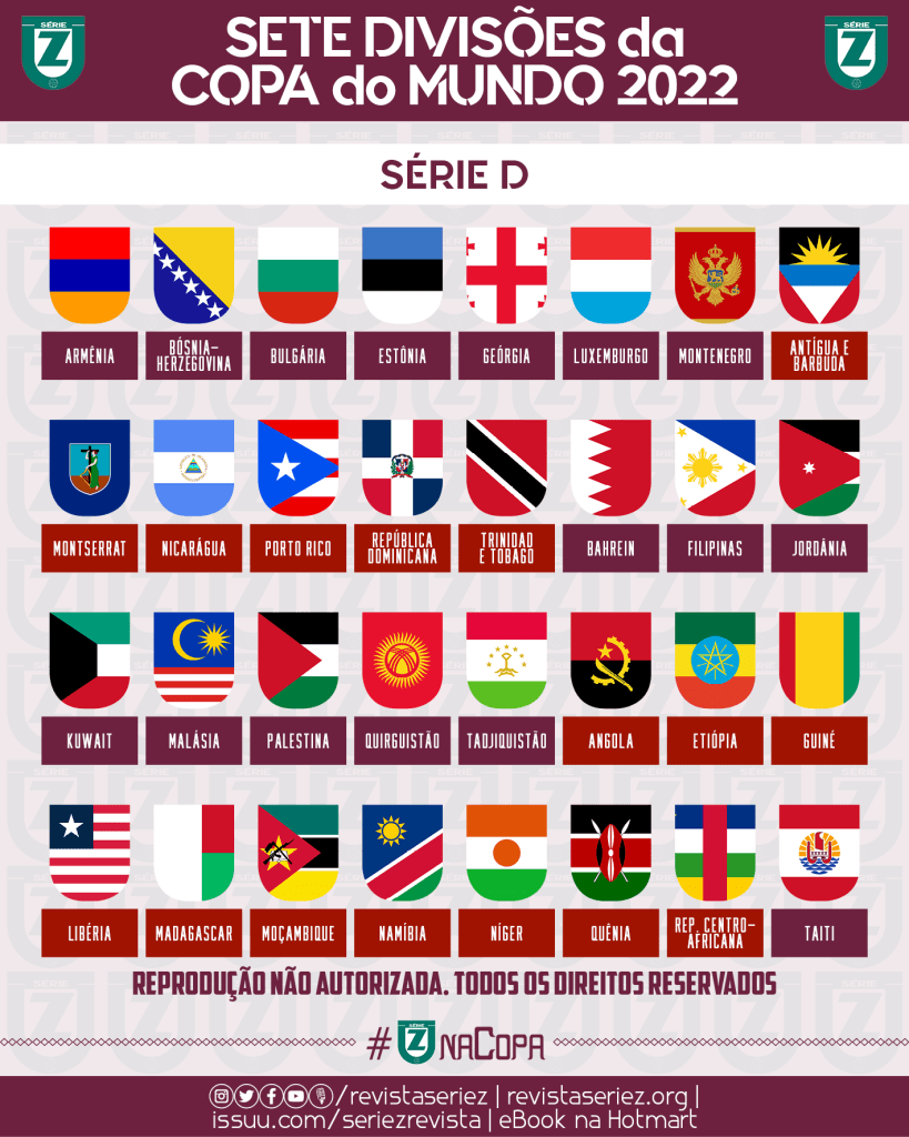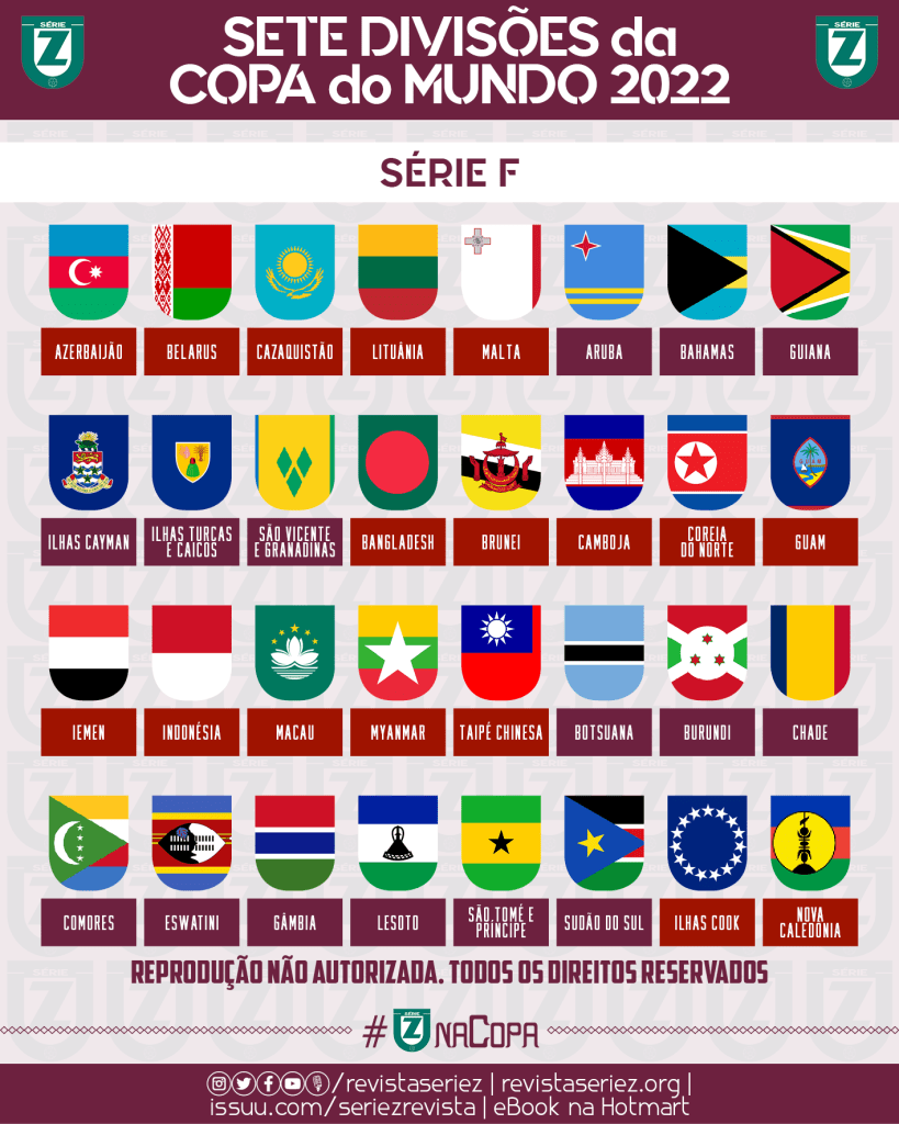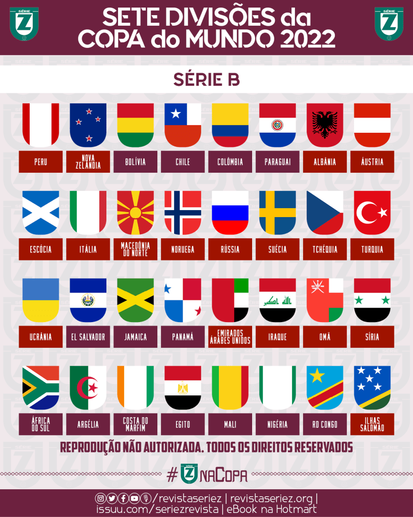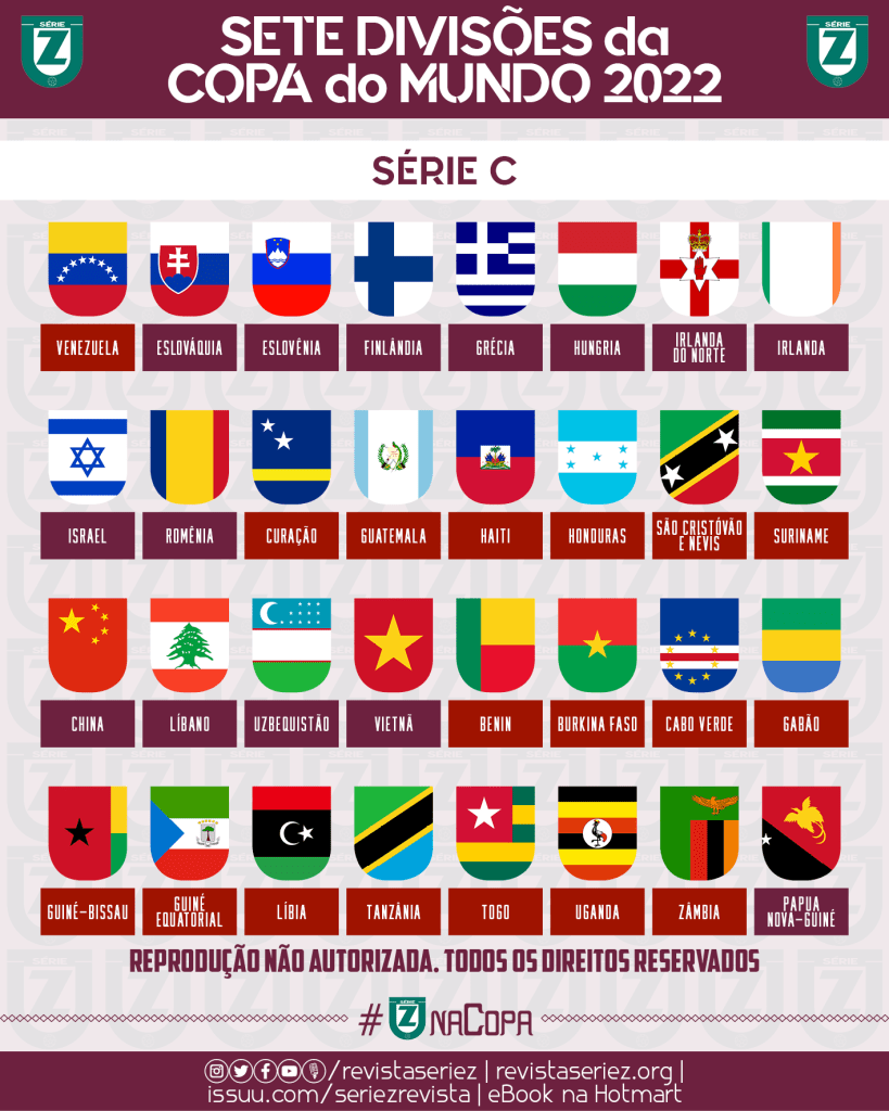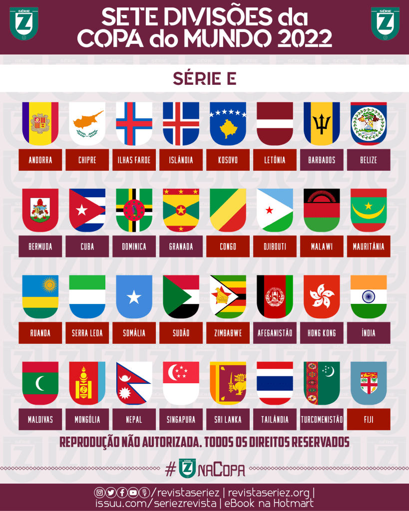 Antes das edições de 2014 e 2018, a Revista Série Z imaginou como seriam as sete divisões da Copa do Mundo, reunindo todas as seleções que são filiadas à FIFA em diferentes níveis do torneio mais legal de equipes nacionais. Para 2022, voltamos a fazer as simulações das competições alternativo-imaginárias, a última que contará com 32 seleções.