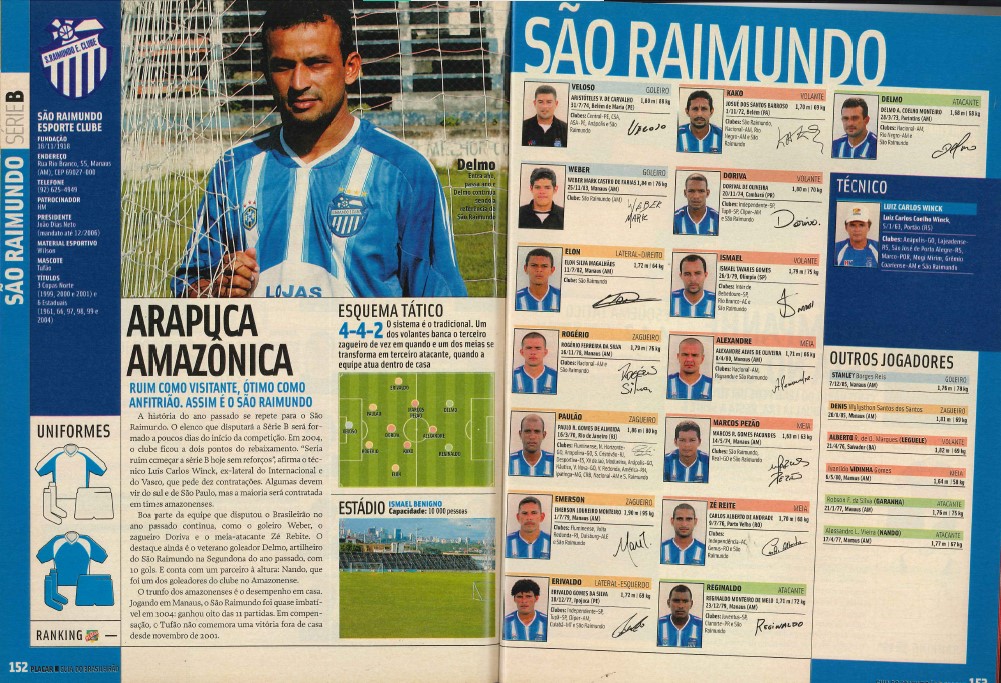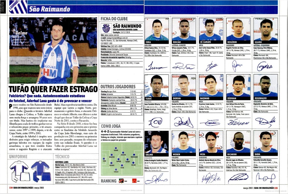 Em 2003, o São Raimundo ainda contava com Aderbal Lana no comando da equipe, o responsável direto pela transformação da equipe e hegemonia estadual e regional. No texto do guia, o treinador era tratado como “autodenominado estudioso do futebol” e que tinha como estratégia “garimpar talentos do Amazonas”. No ano seguinte, o foco foi o elenco que não havia se definido até três semanas antes do início da Série B, já que não se podia investir o mesmo em um Amazonense e Série B. No estadual, a folha salarial chegava a 30 mil reais e subiu para 100 mil para a disputa da Série B. Nas edições de 2005 e 2006, o São Raimundo teve a mesma característica retratada: a força como mandante. No primeiro momento, a Colina foi chamada de “Arapuca Amazônica” e no número seguinte, o título era “Caseiro sim, com orgulho”. A intenção era retratar que em casa, a equipe teria os pontos necessários para ficar na segunda divisão, já que fora de casa, a equipe ficou temporadas sem vitória.